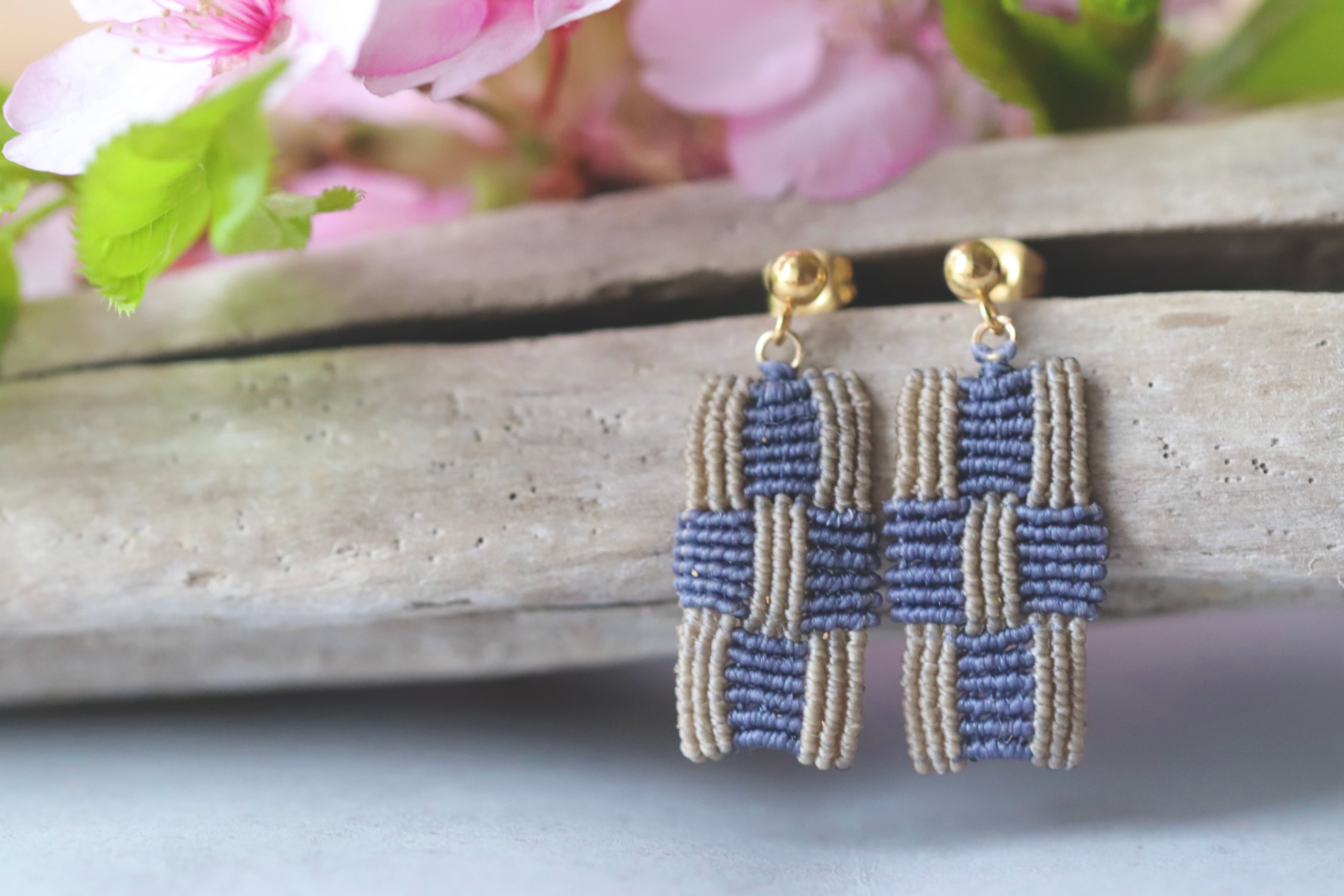 春の鮮やかな装いにぴったりの、織物のように模様を重ね合わせた軽やかで着け心地の良いピアスです。
