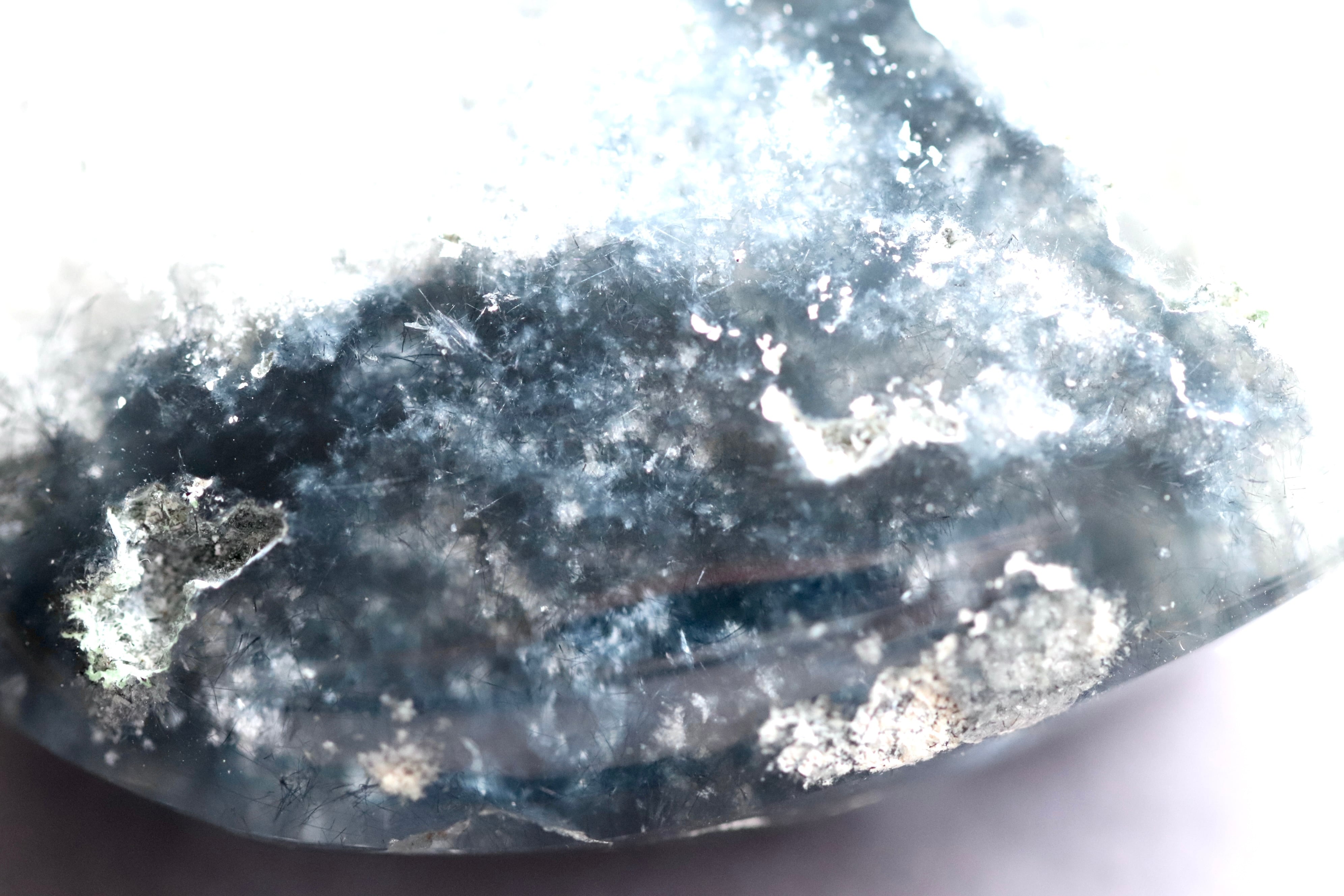 マンダーナイト、マイカ等インクルージョンの黒と白のコントラストが美しいブラックガーデンクオーツ。