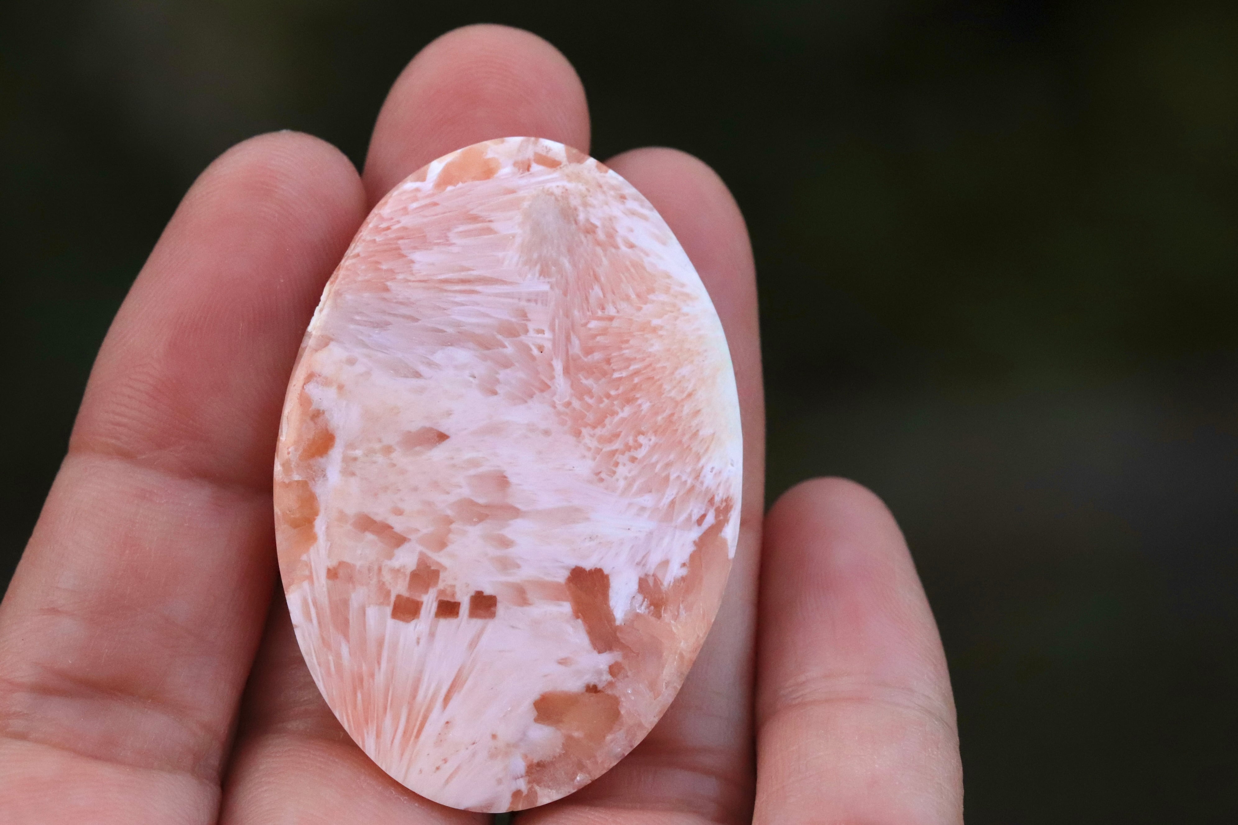 天使の羽のようなシルキーな輝きを放つピンクスコレサイトのルースです。