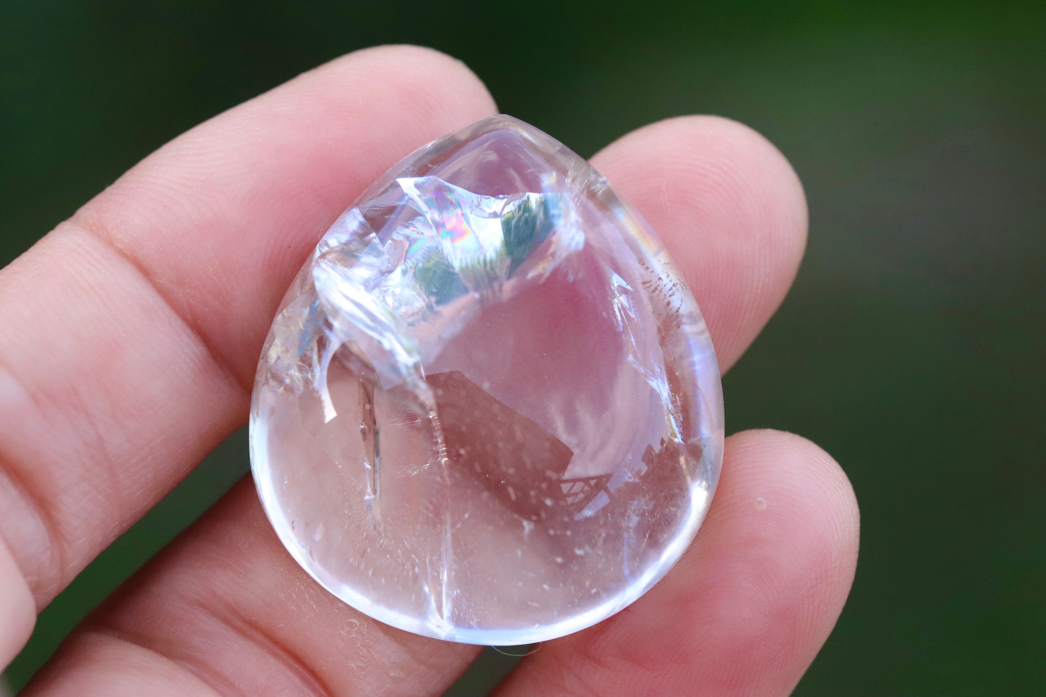 虹の浮かぶ、コロンビア産レムリアンシードクリスタル原石から切り出し、ぷっくりと丸みの美しいフォルムに仕上げたルースです。