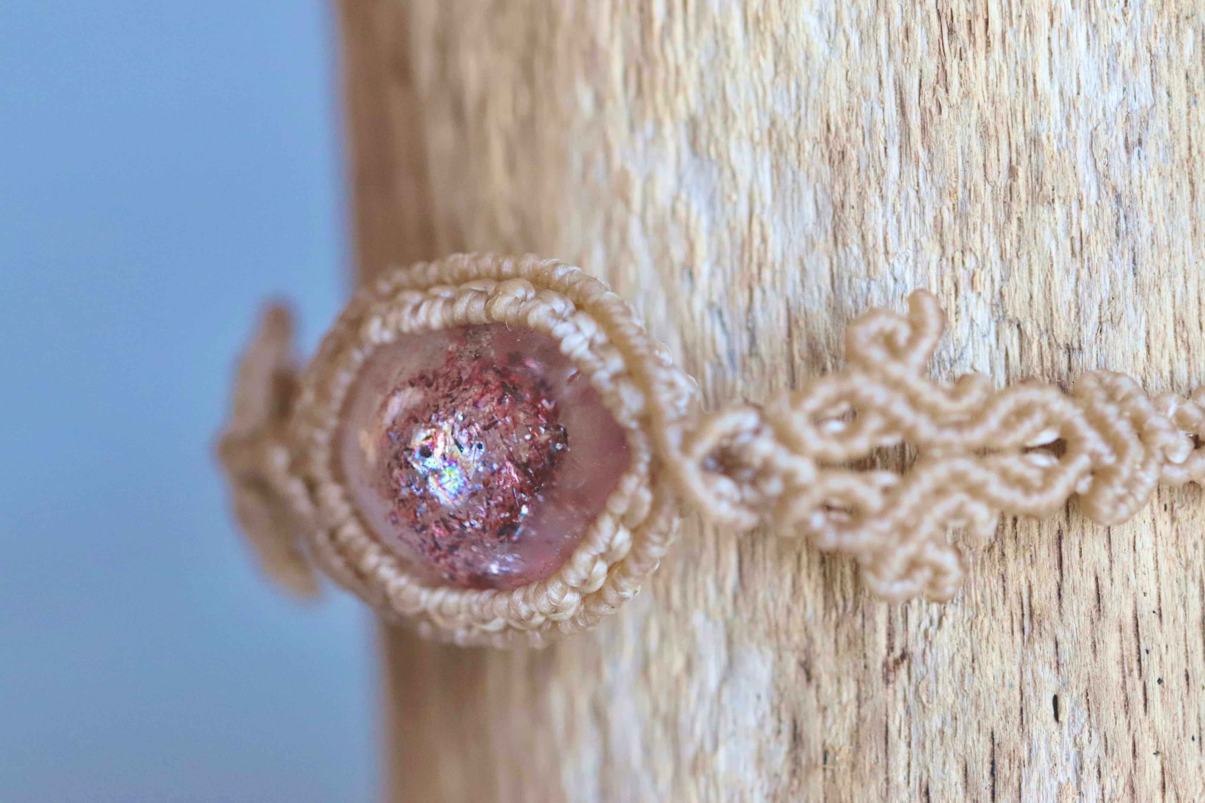 結晶の成長の特性上レピドクロサイトの結晶が赤富士のような形をしており、ブレスレットを覗くのが楽しみになるようなデザイン、仕上がりになっております。