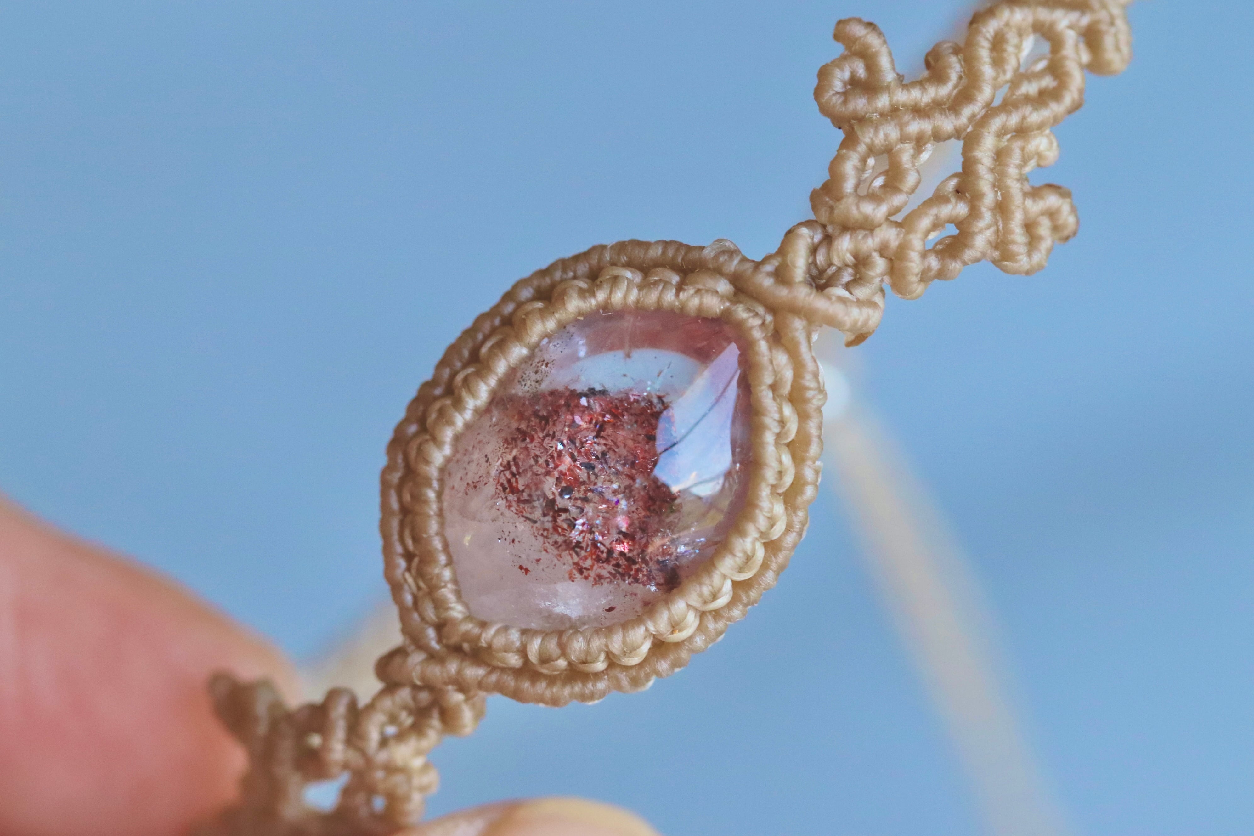 透明度の高いレピドクロサイトインクオーツの含まれた水晶ポイントから、切り抜いたピースを使用したブレスレットです。