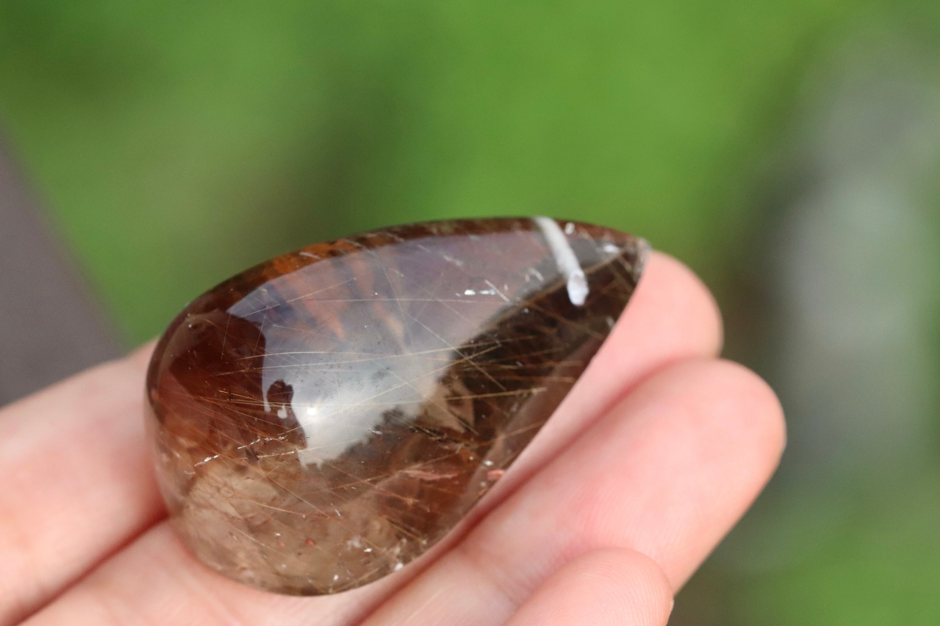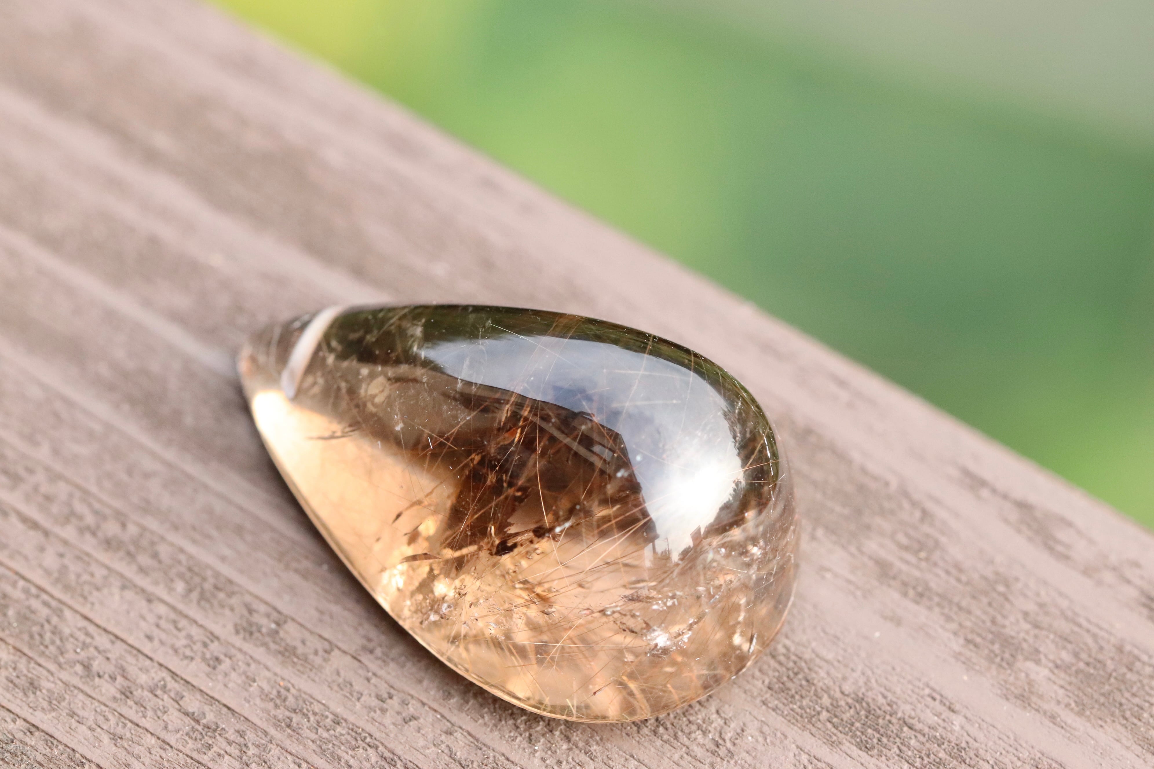 ぷっくりとしたほかにはないこだわりのフォルムで、中の世界がしっかりと覗け、流星群のようなルチルを存分に楽しめる一点です。