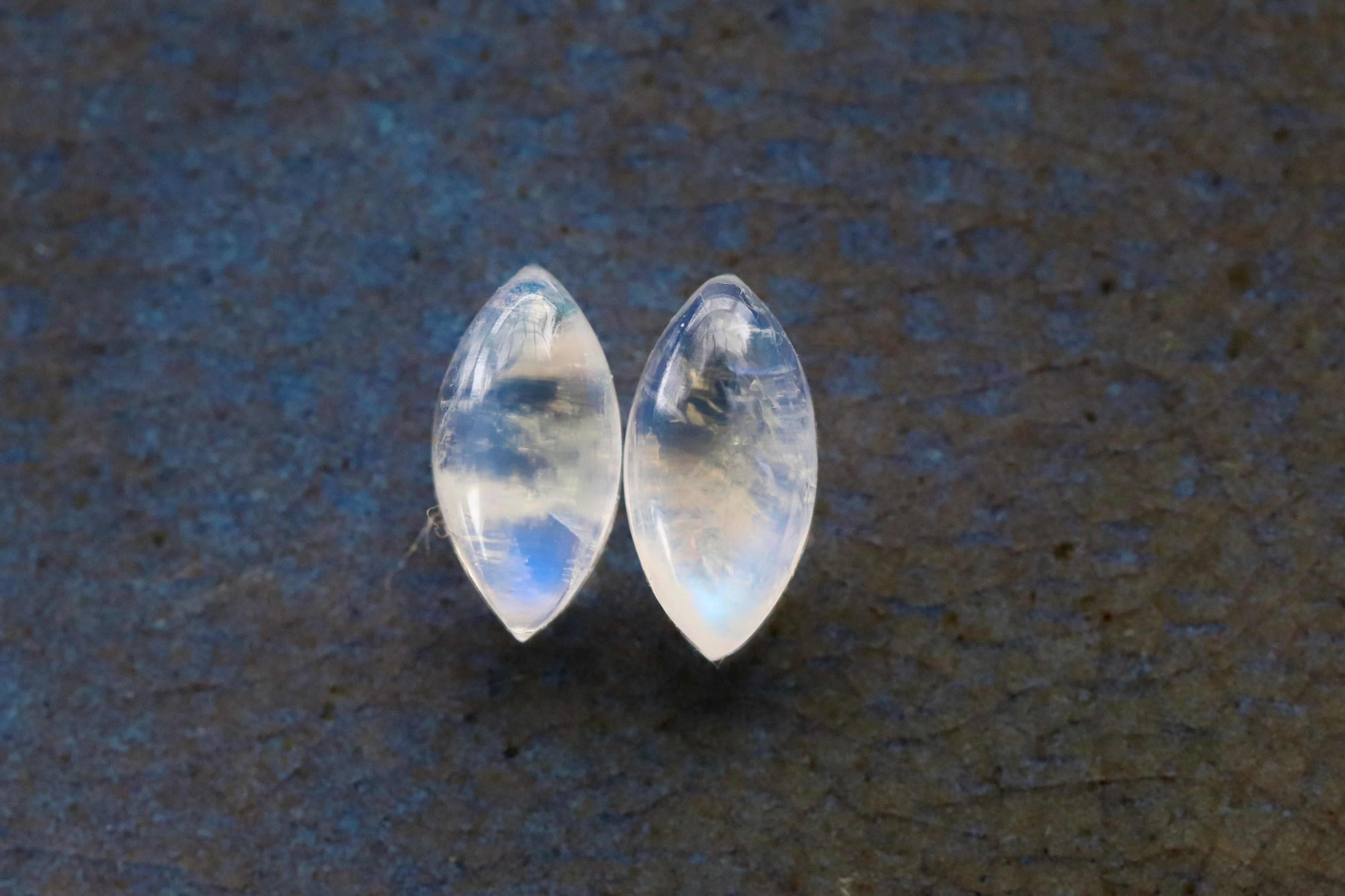 インド ビハール産レインボームーンストーン マーキースカボションカットペア 3
