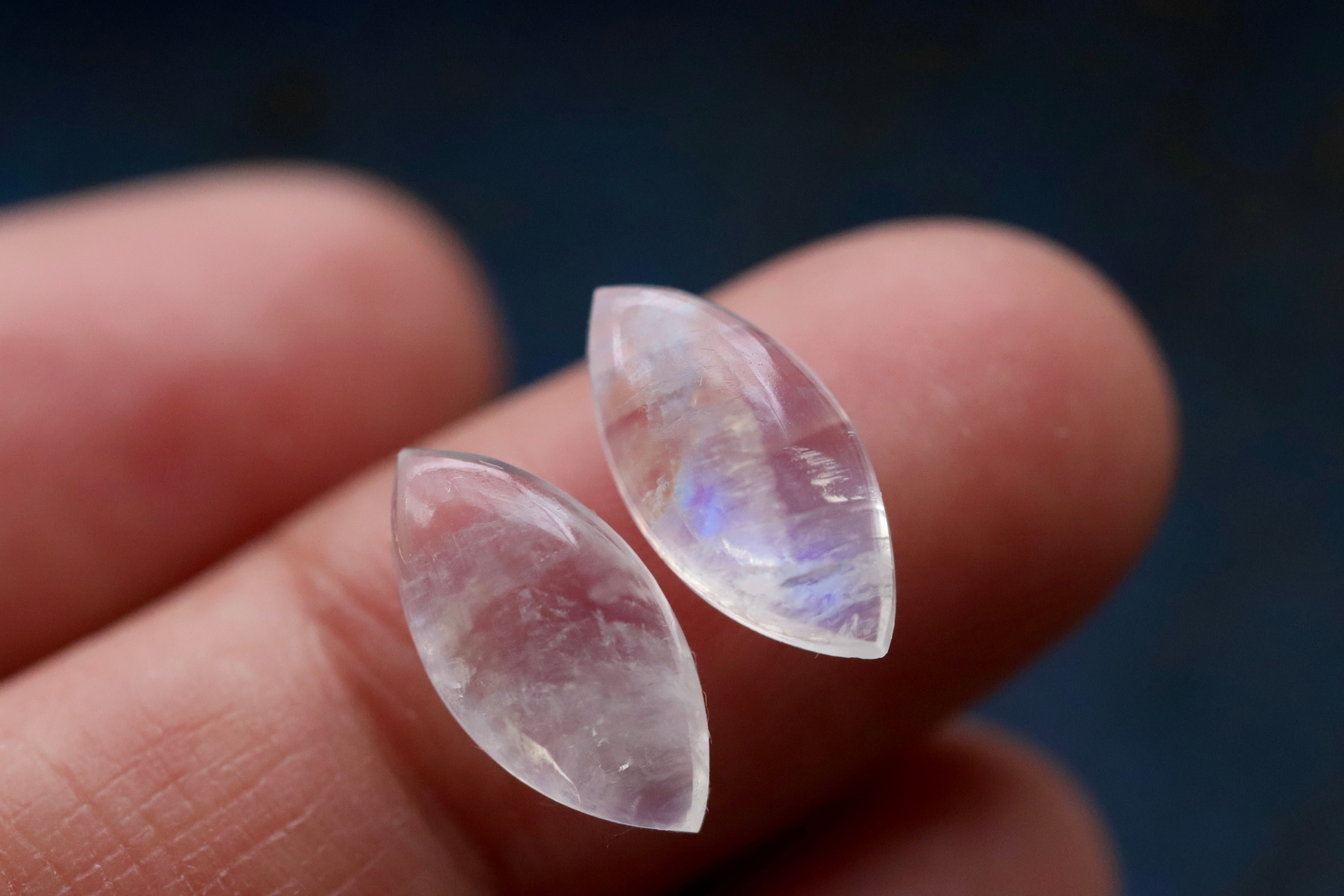 インド ビハール産レインボームーンストーン マーキースカボションカットペア2