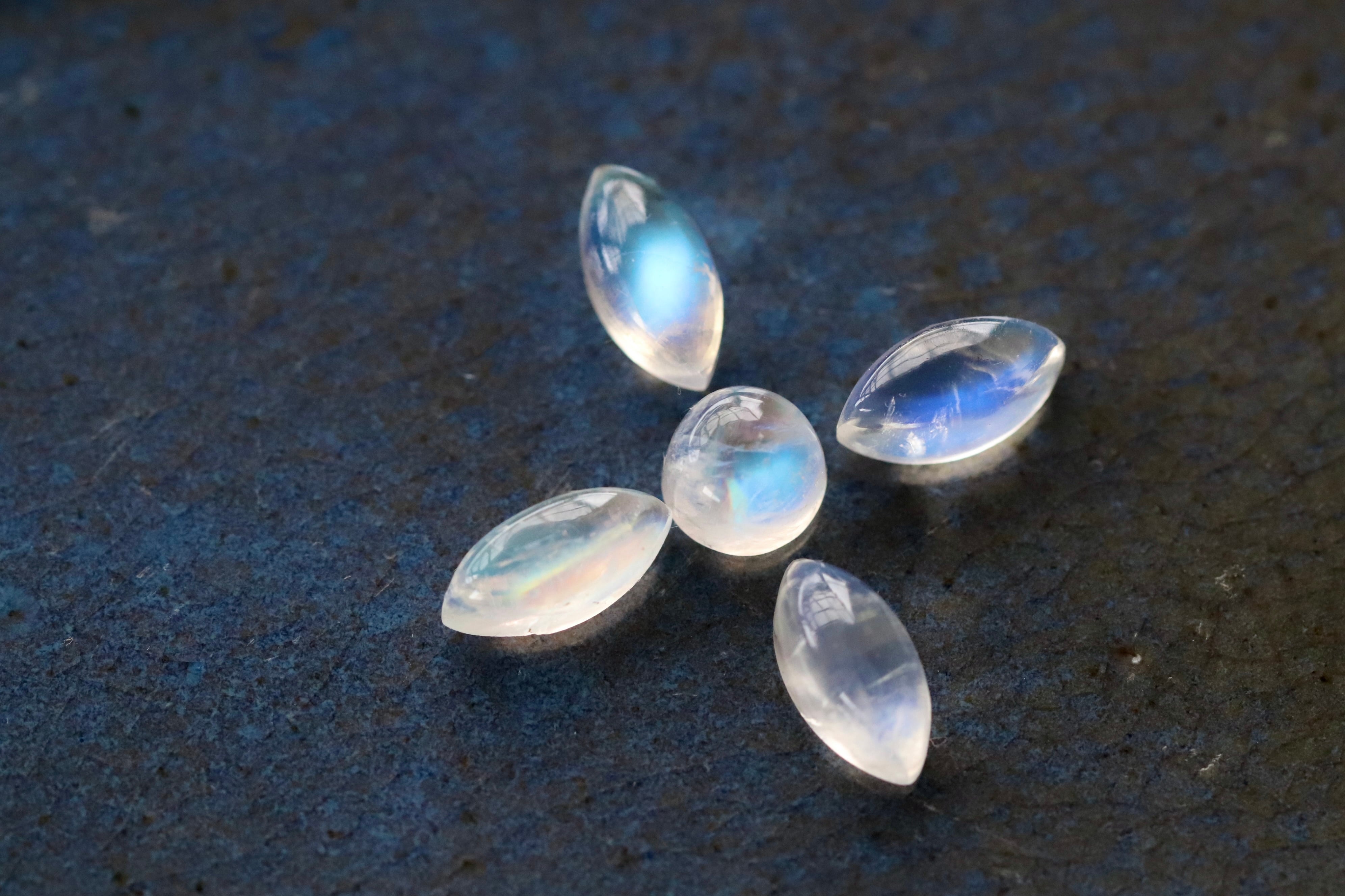 インド ビハール産レインボームーンストーン マーキース&ラウンドカボションカットセット
