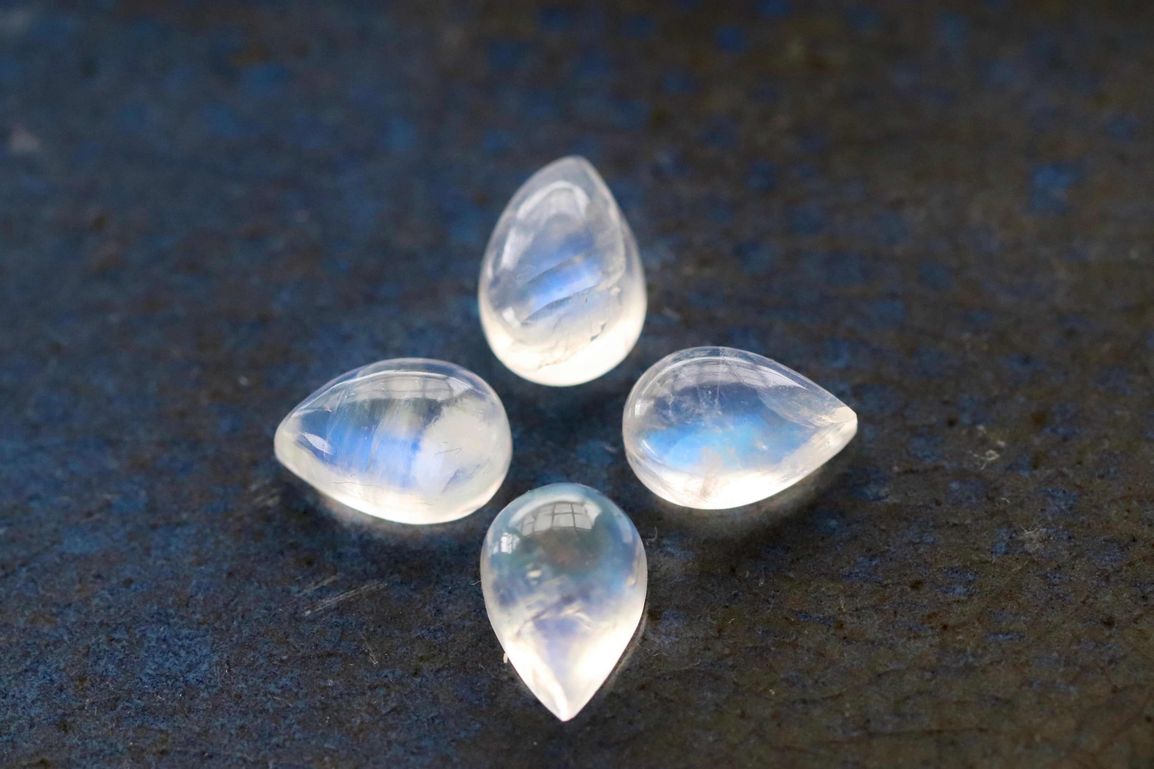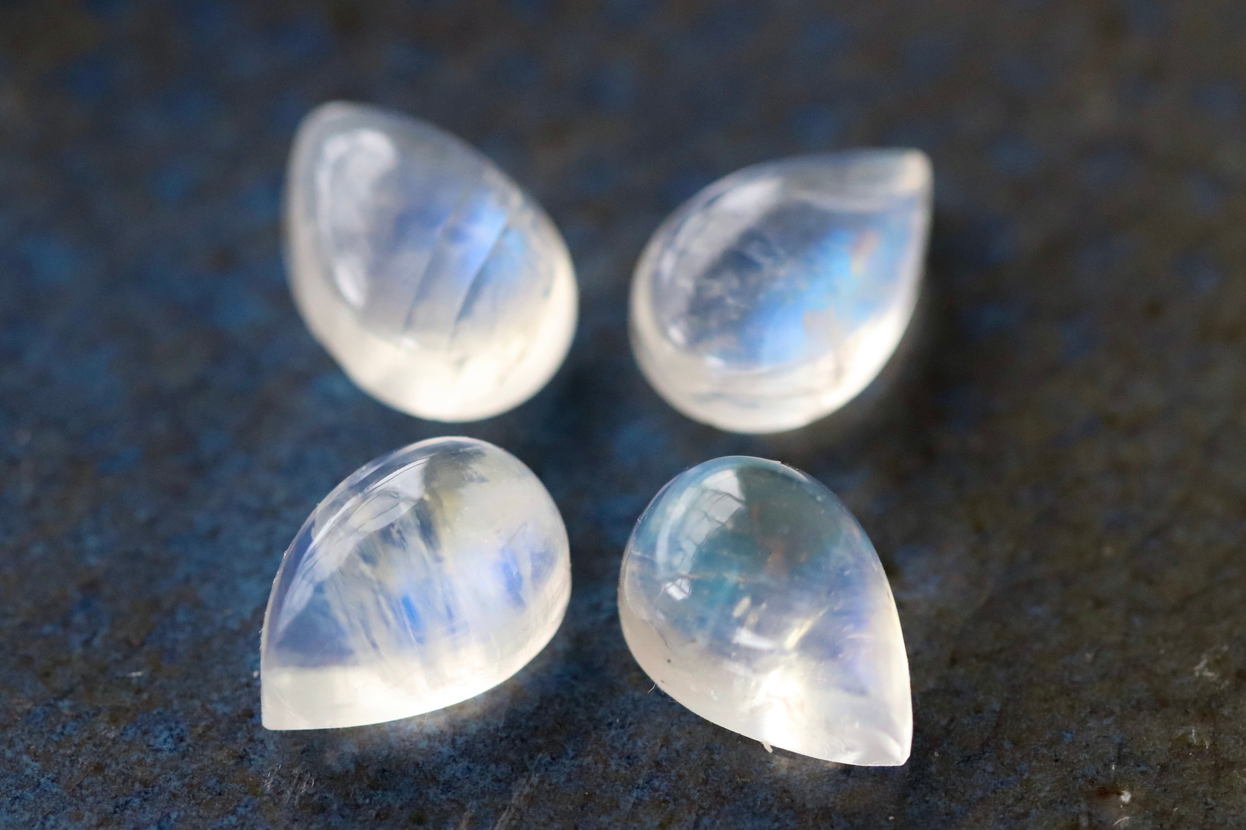 インド ビハール産レインボームーンストーン ティアドロップ4ピースセット