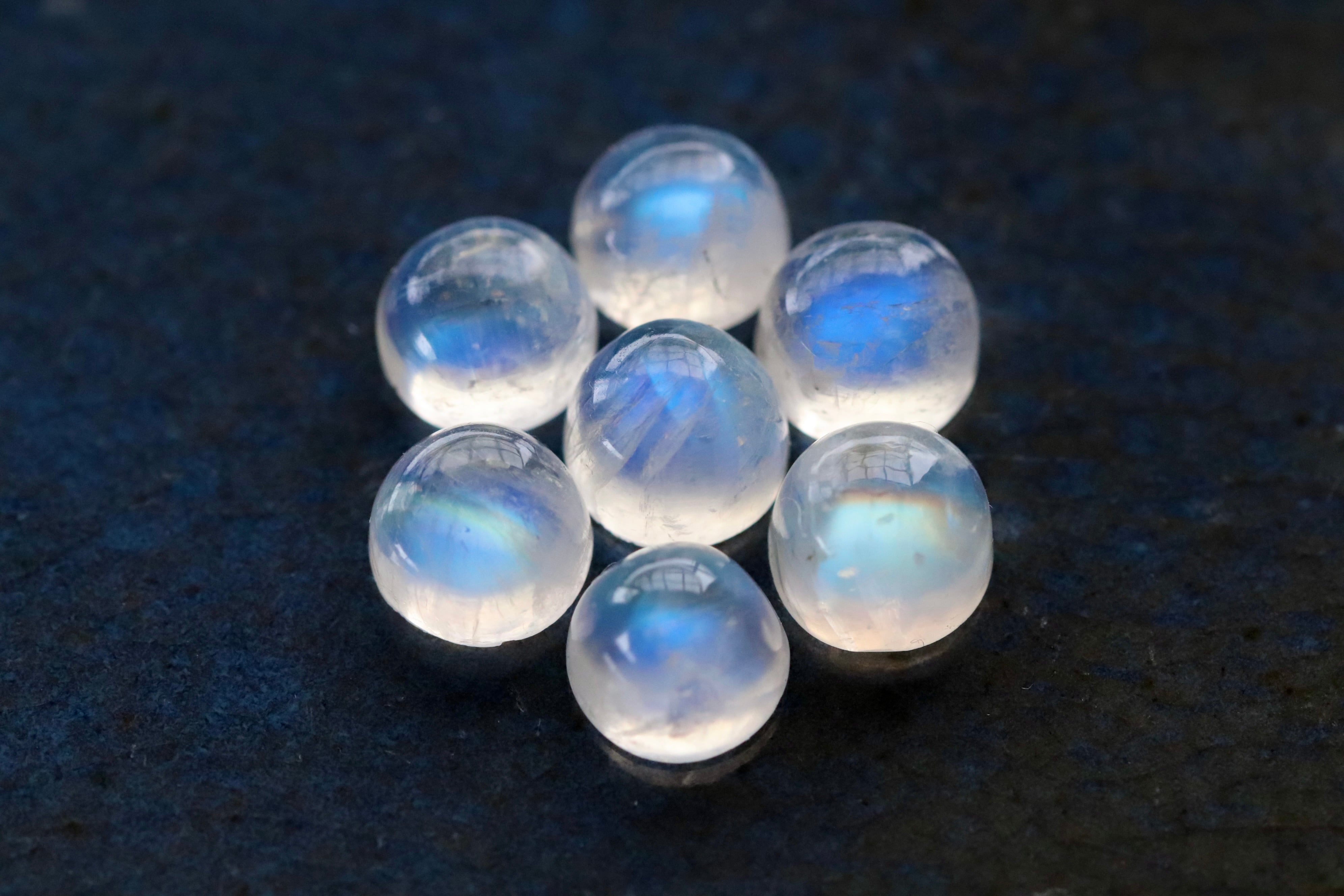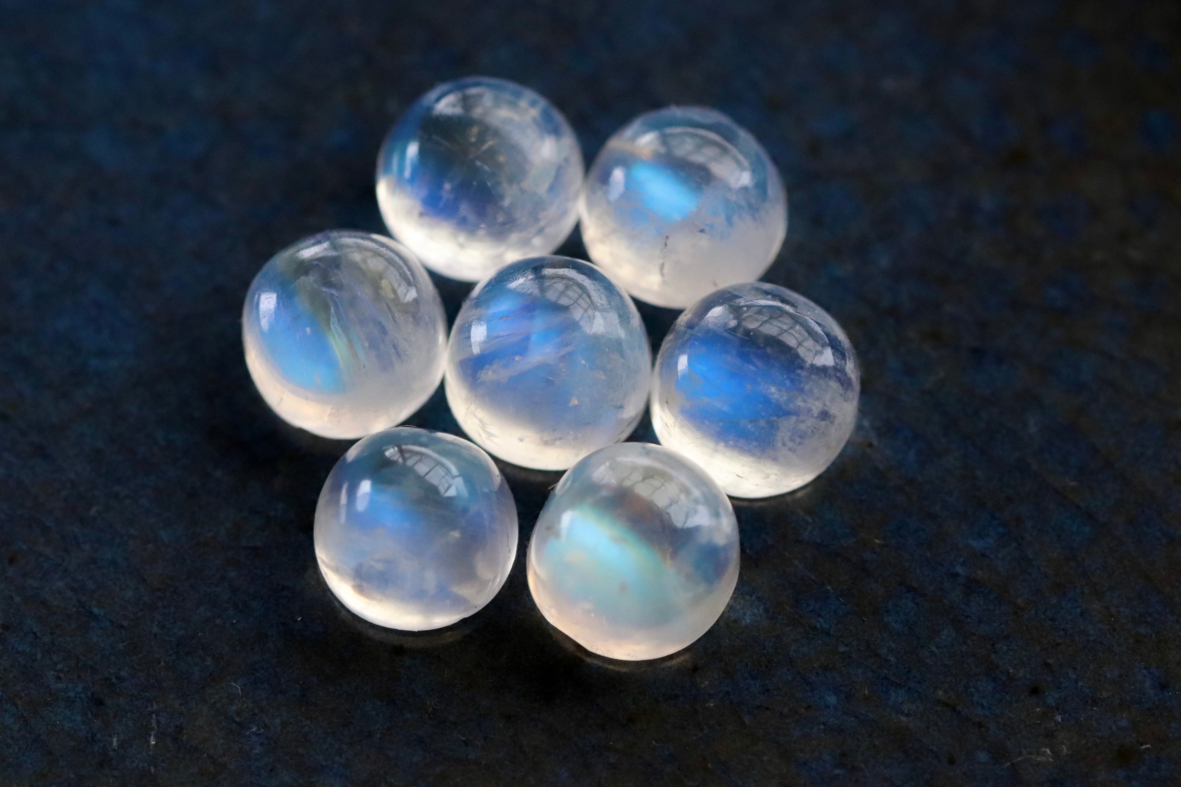 インド ビハール産レインボームーンストーン ラウンドカボション7ピースセット