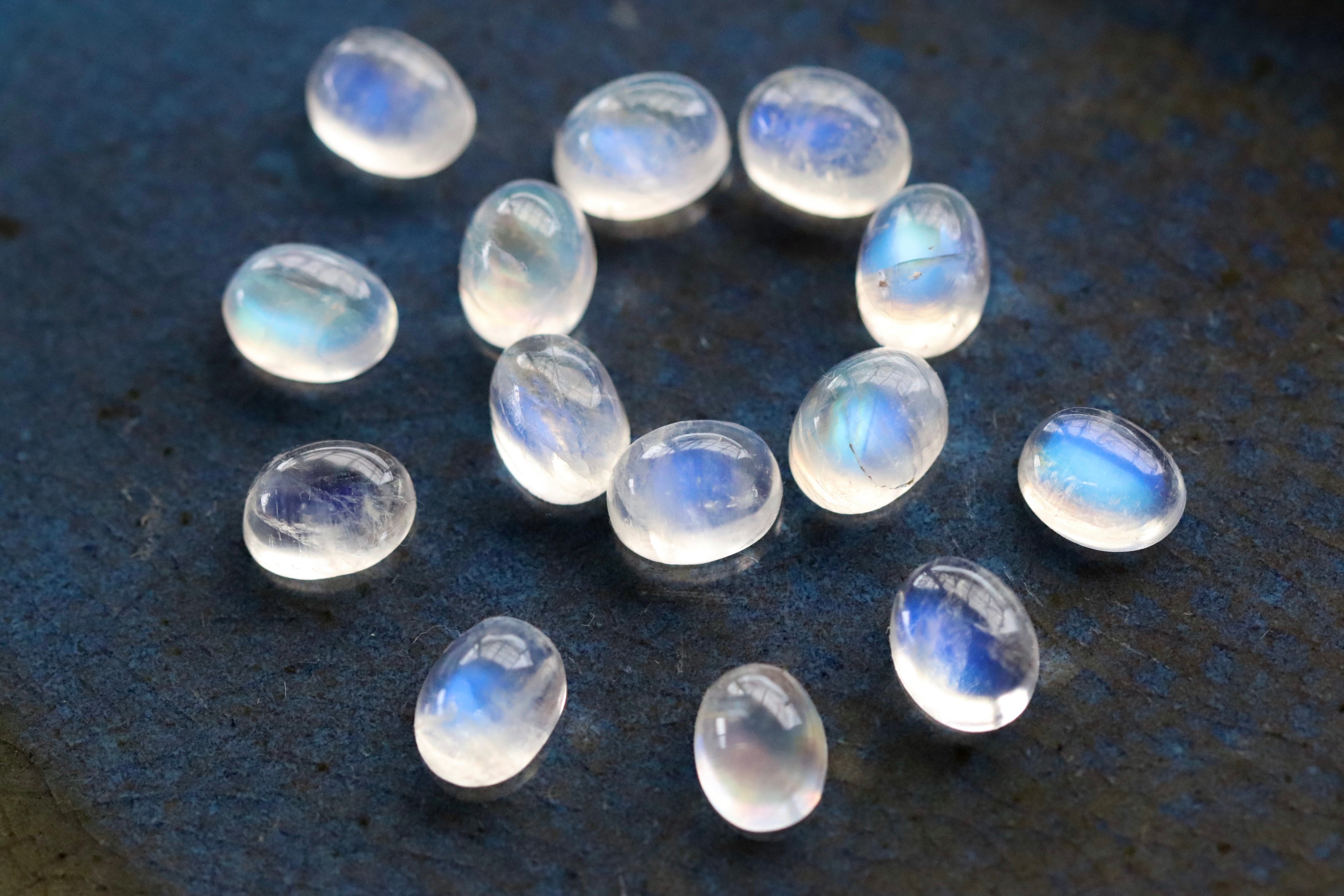 インド ビハール産レインボームーンストーン オーバルカボション14ピースセット