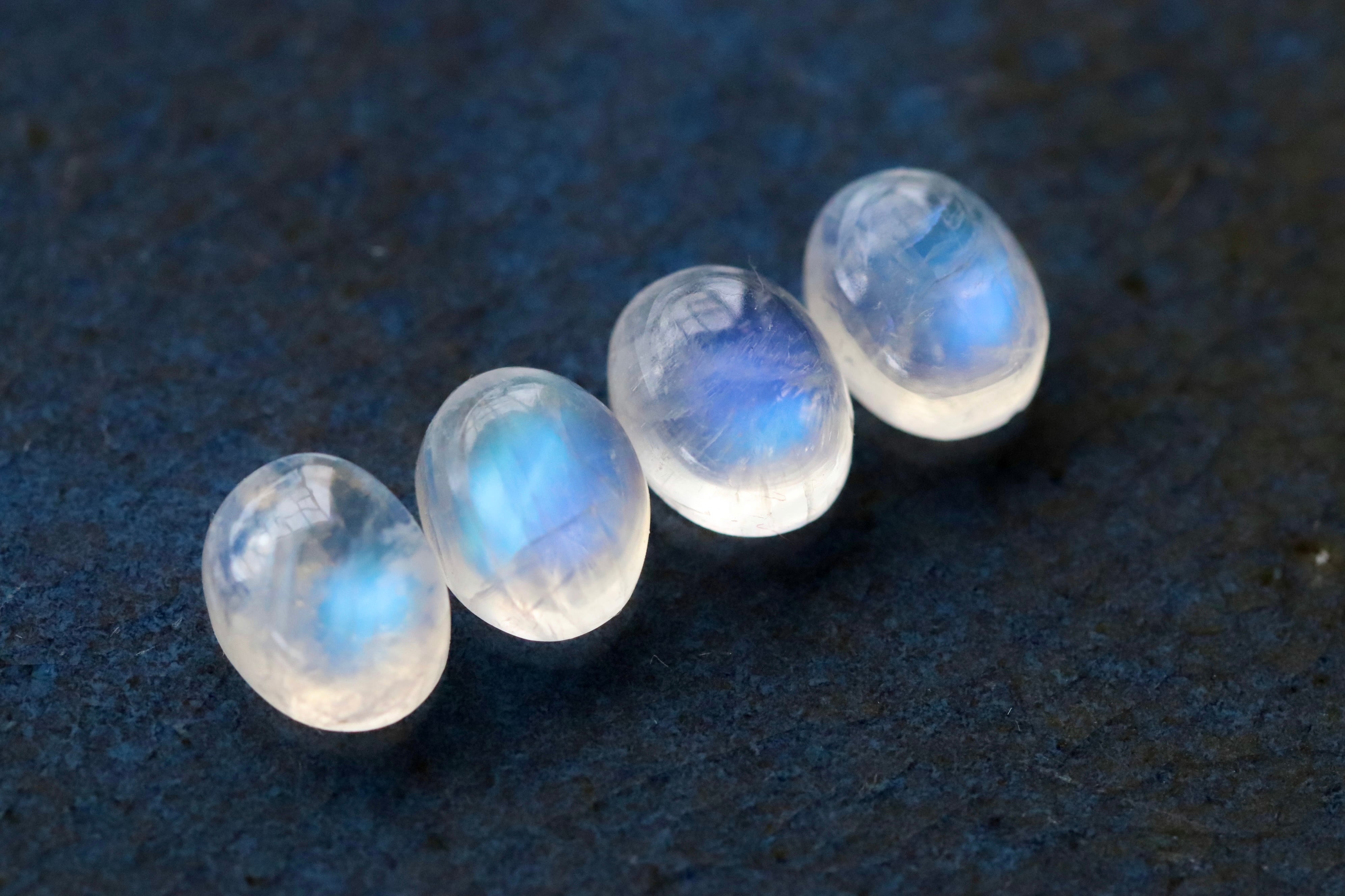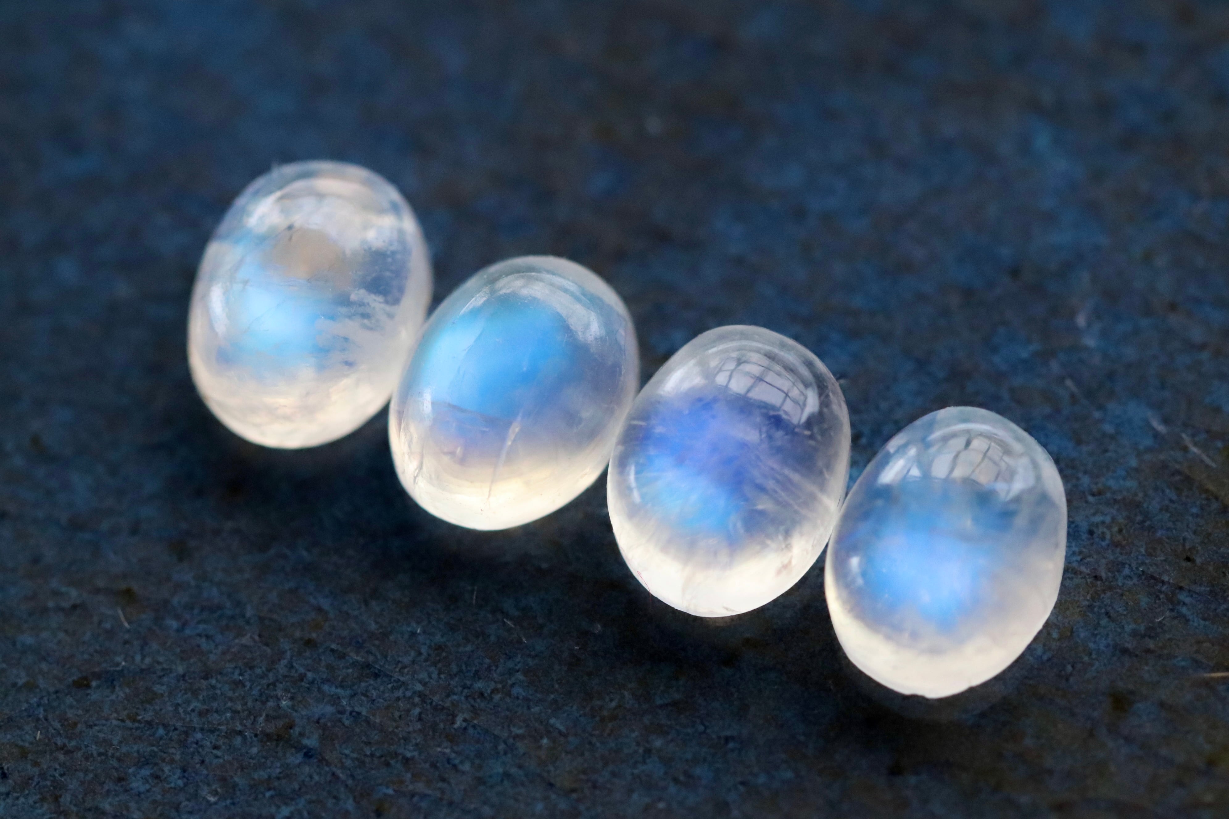 インド ビハール産レインボームーンストーン オーバルカボション4ピースセット1