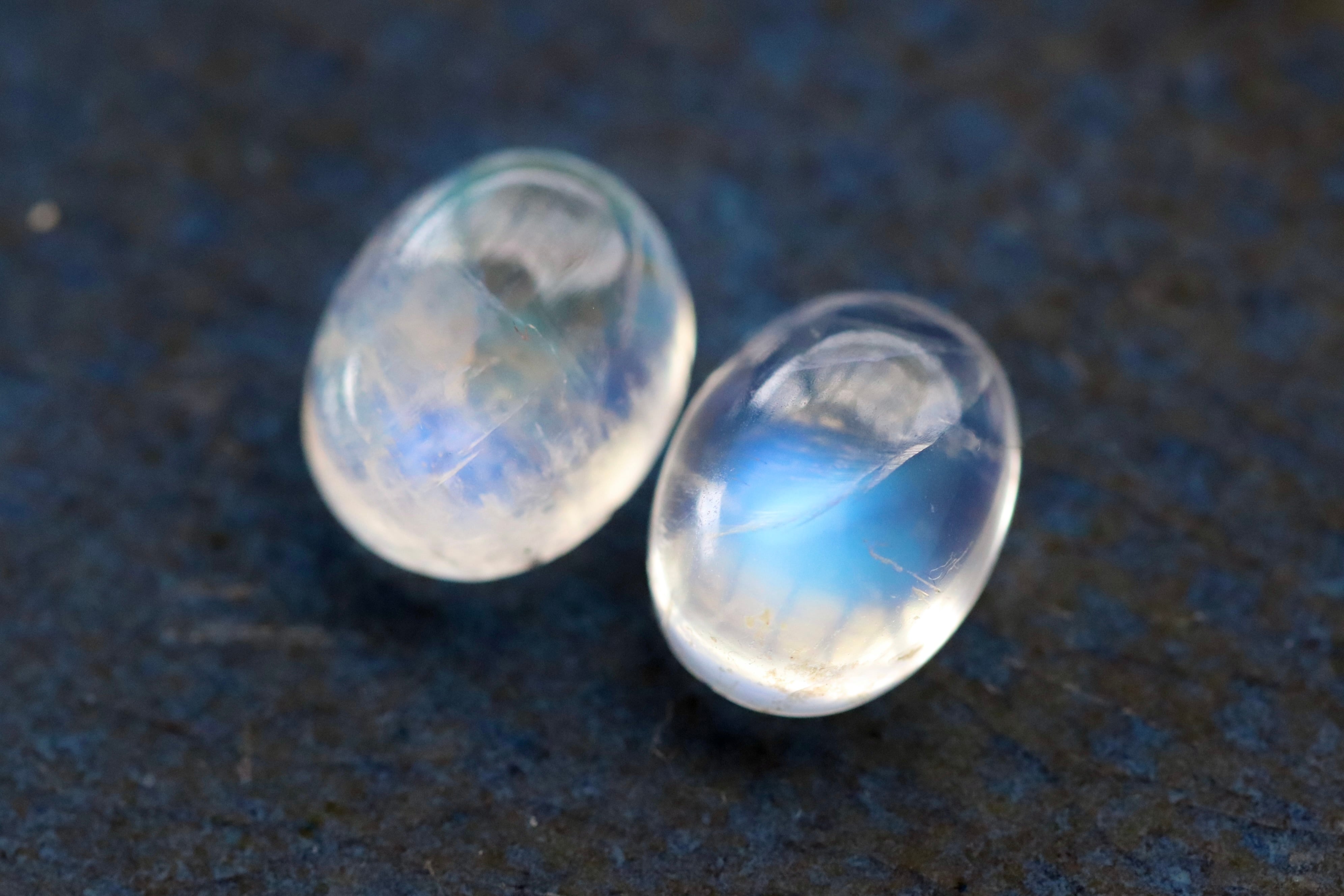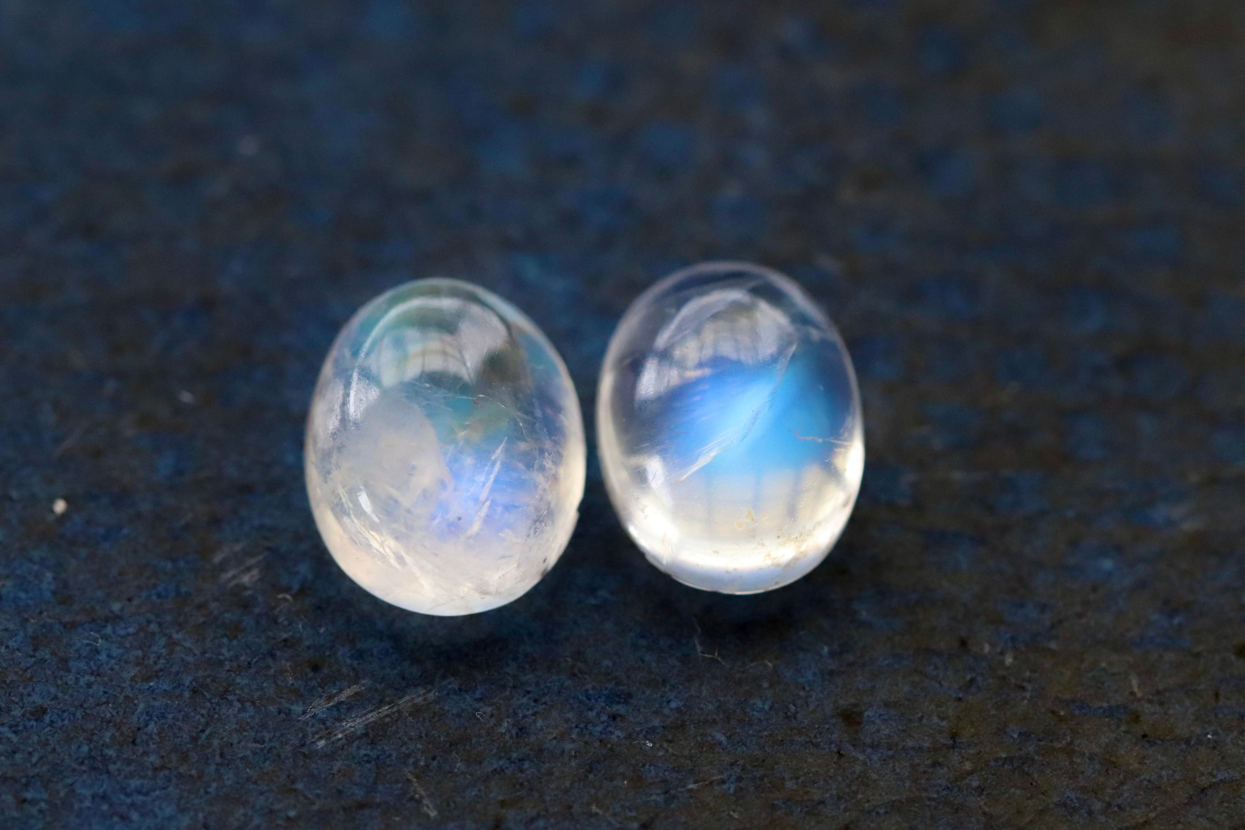 インド ビハール産レインボームーンストーン オーバルカボションピアスペア2