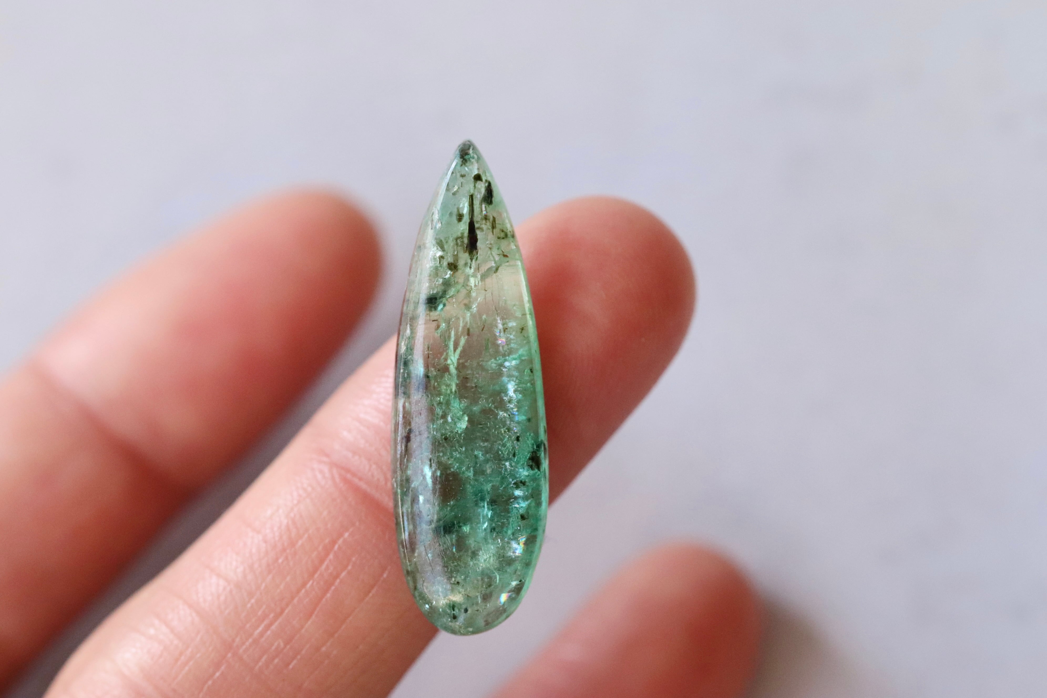 グリーンカイヤナイト独特の透明感のあるライムグリーンがとても魅力的な一点です。