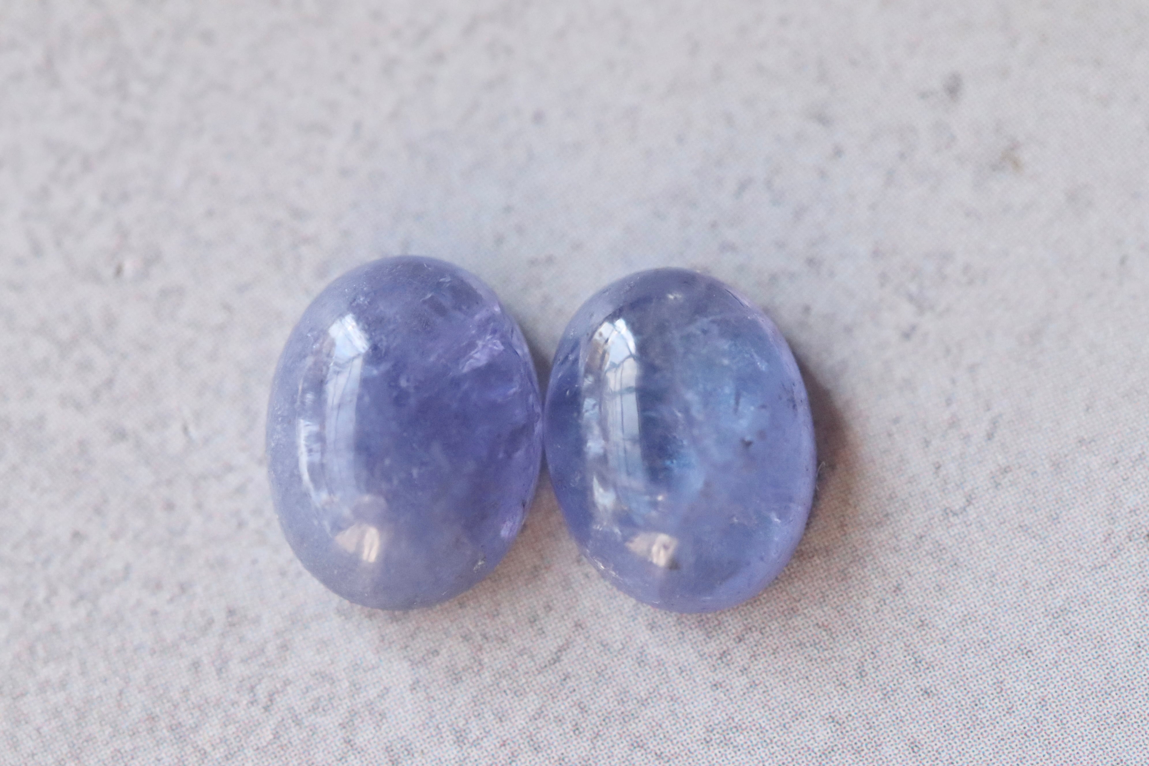 タンザナイト独特の紫がかった青色の可愛らしいオーバル形のルースをピアスペアでご用意致しました。