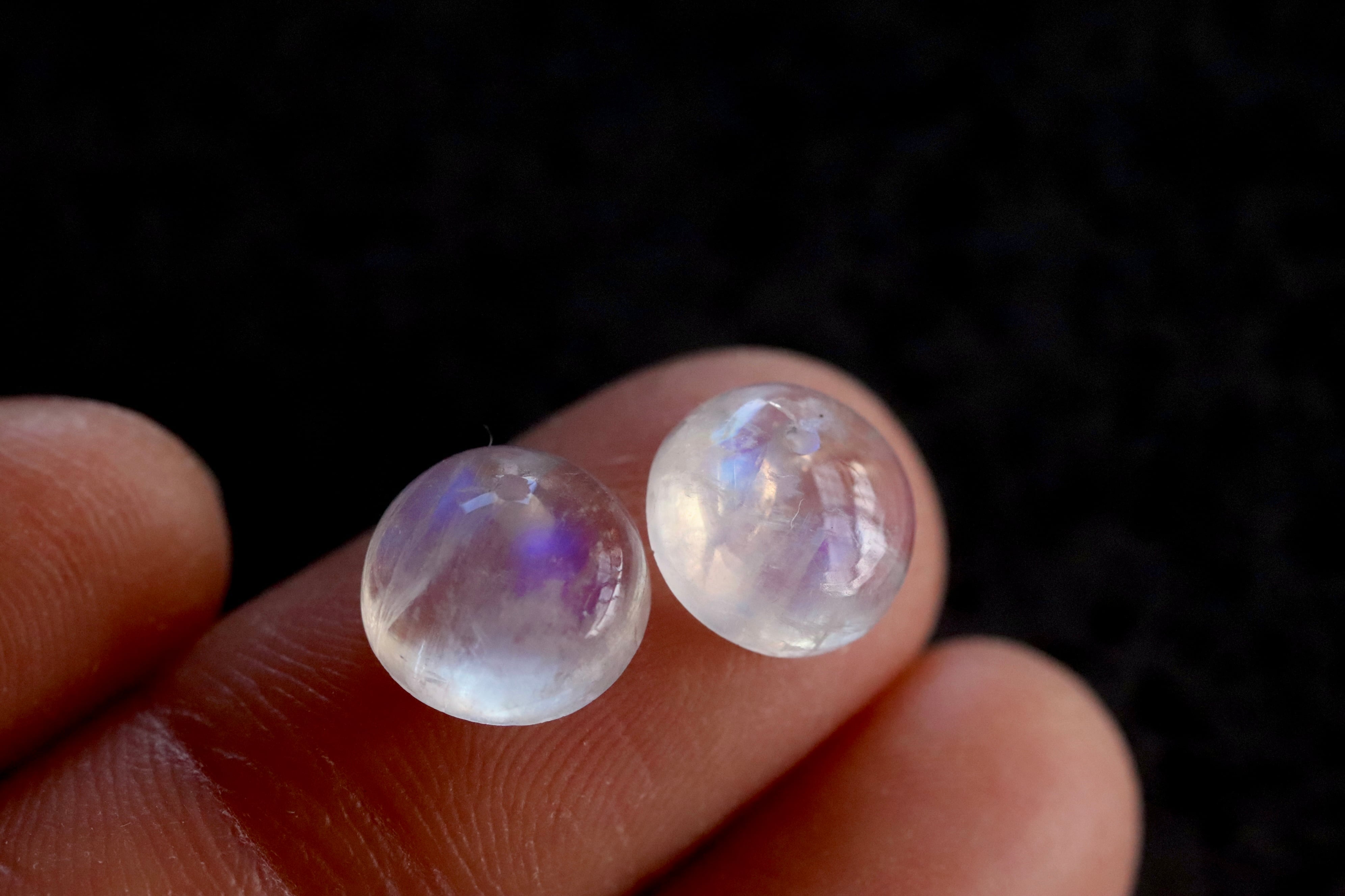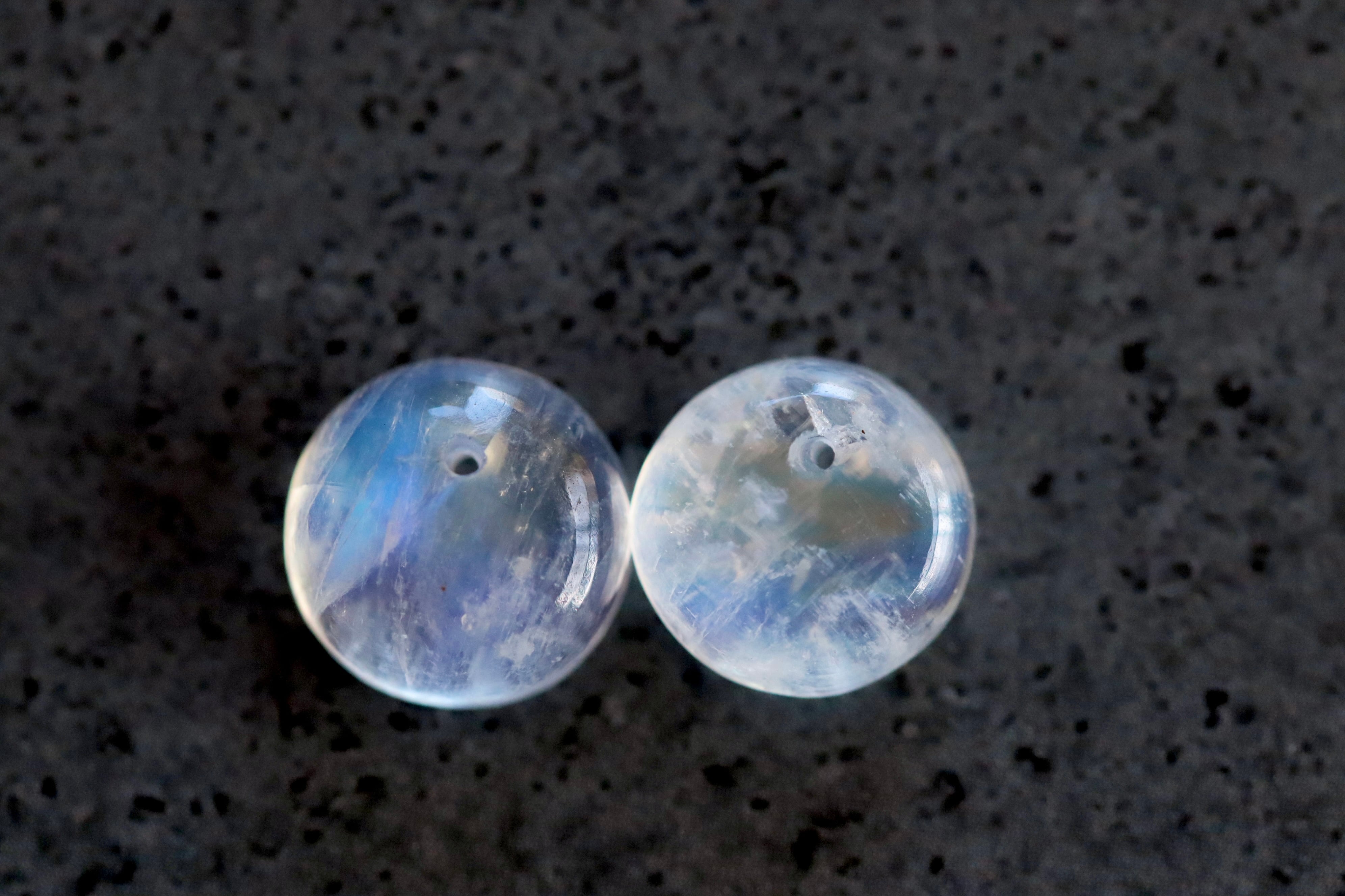 【1mm正面穴あき】【ピアスペア】インド ビハール産レインボームーンストーン2