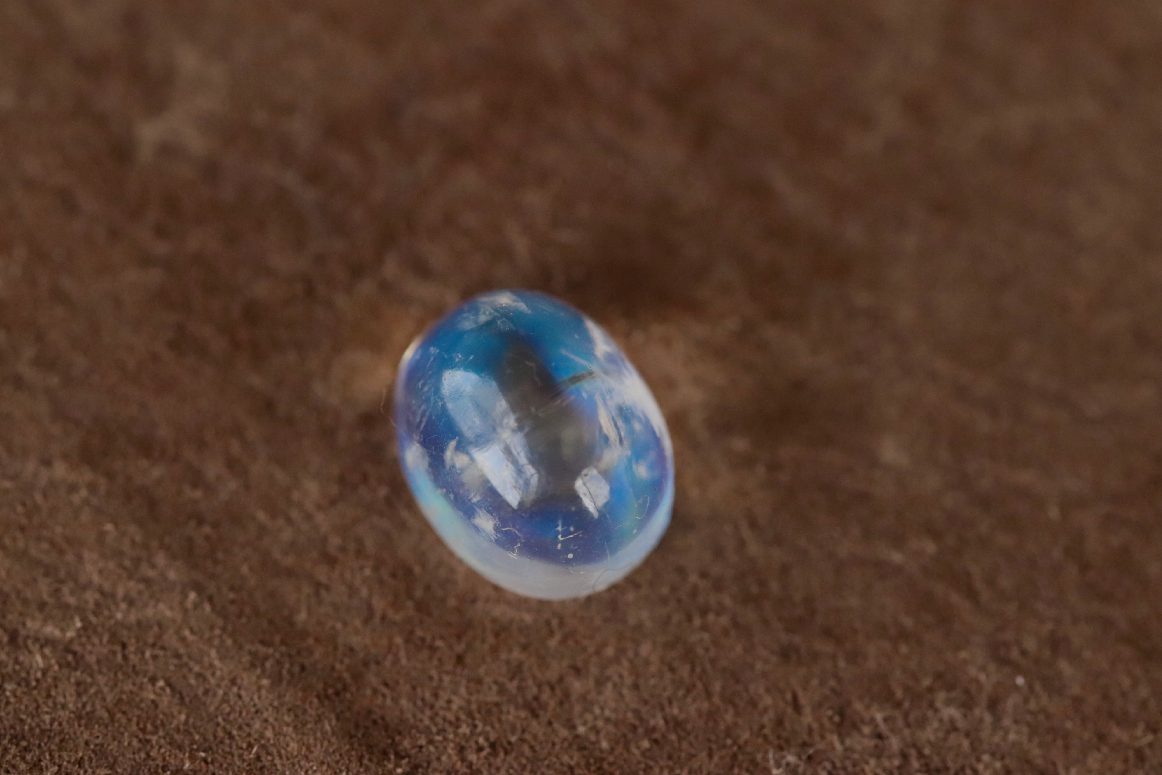 満月の光の様な透き通る白い光の中に漂う美しい青いシラーが本当に神秘的な一点です。