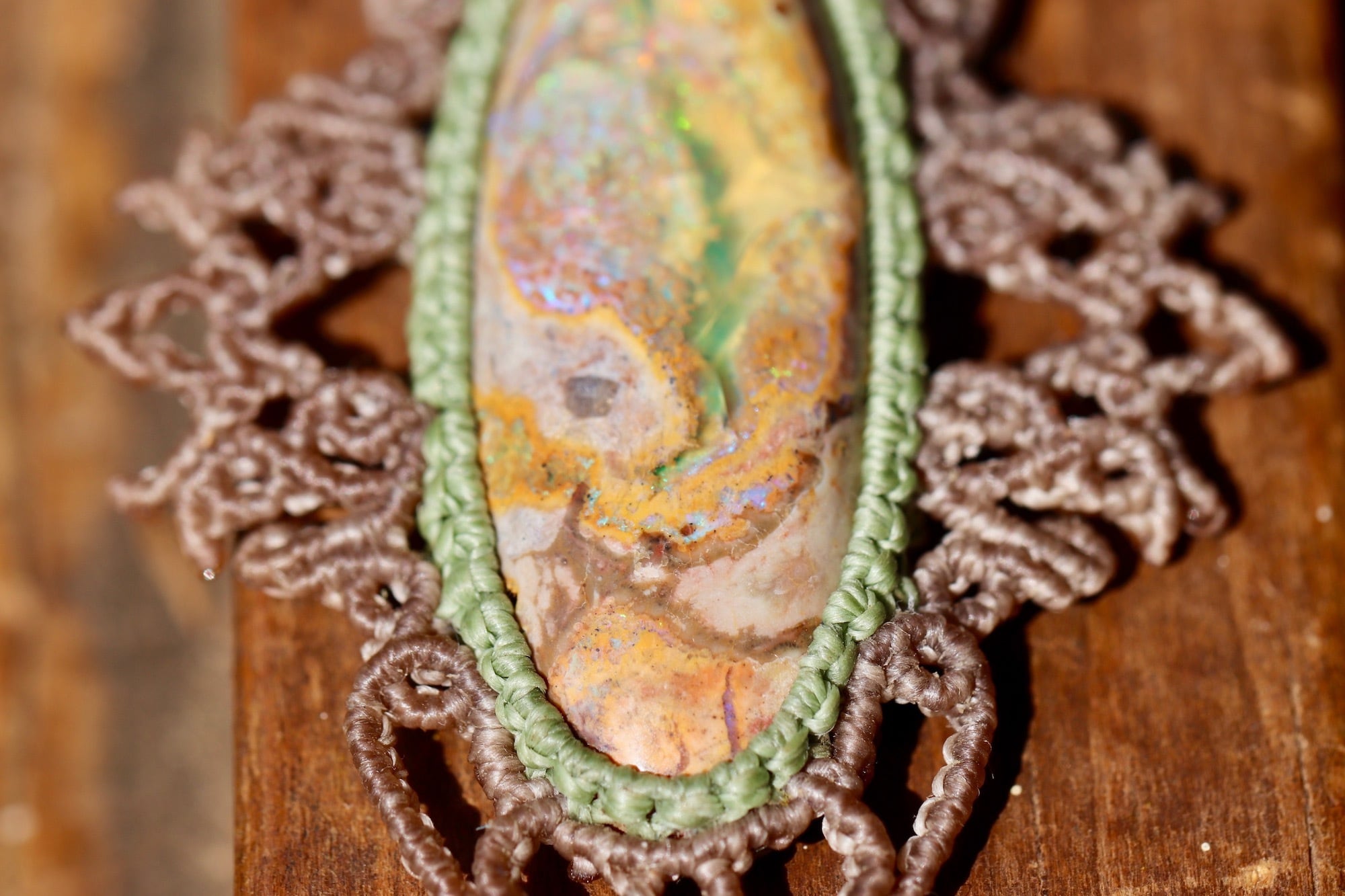 奥底まで覗き込みたくなる遊色の素晴らしい大粒のカンテラオパール を使用しました。