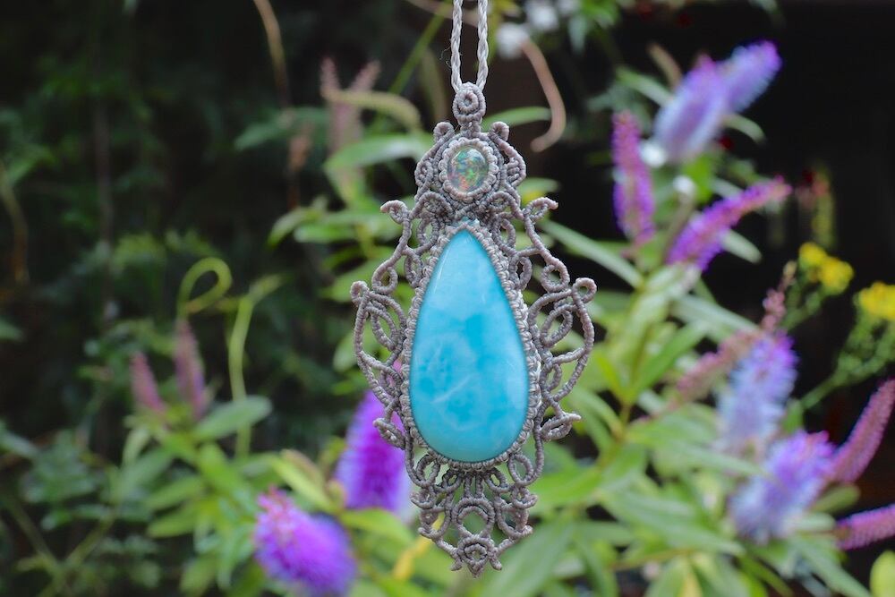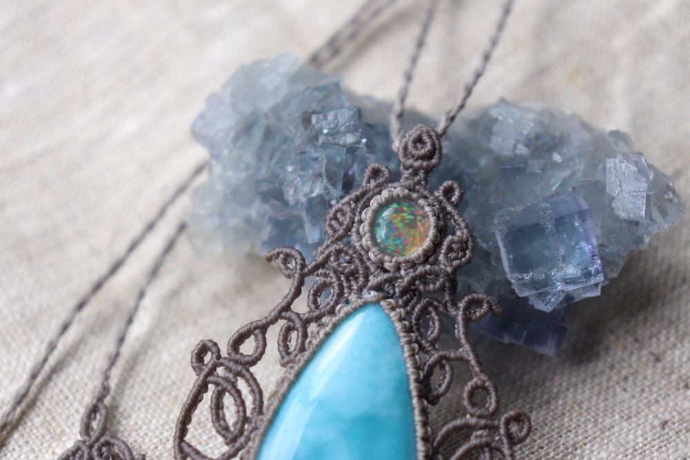 [Larimar]&[Precious opal] Pendant 〜Celeste〜
