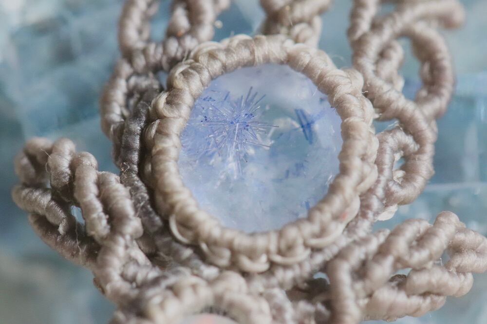 水晶の中に咲く一輪の青い花のようなデュモルチェライトの結晶がとても神秘的です。