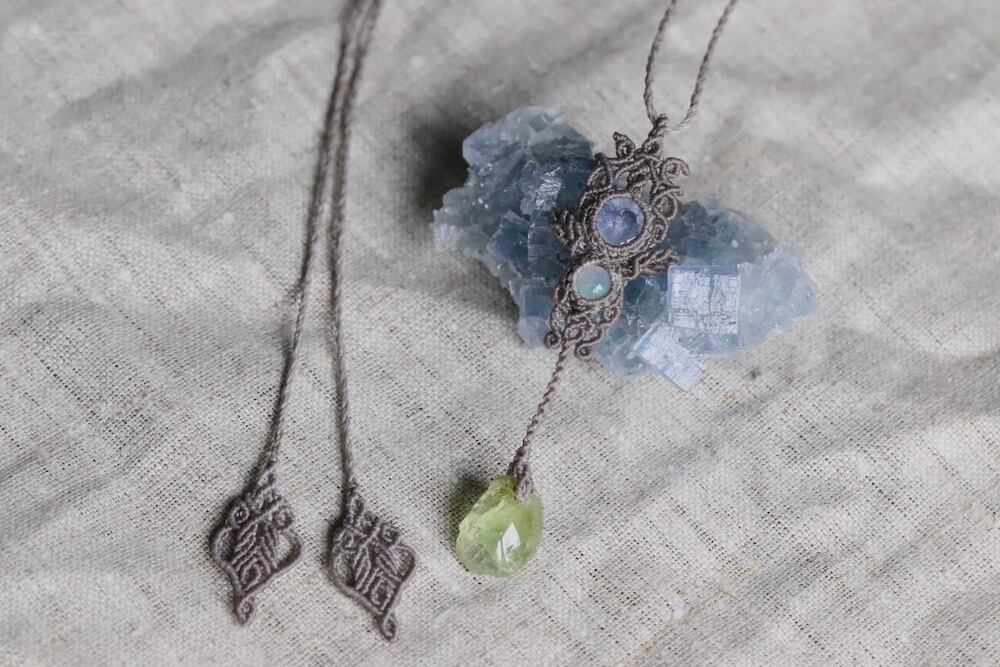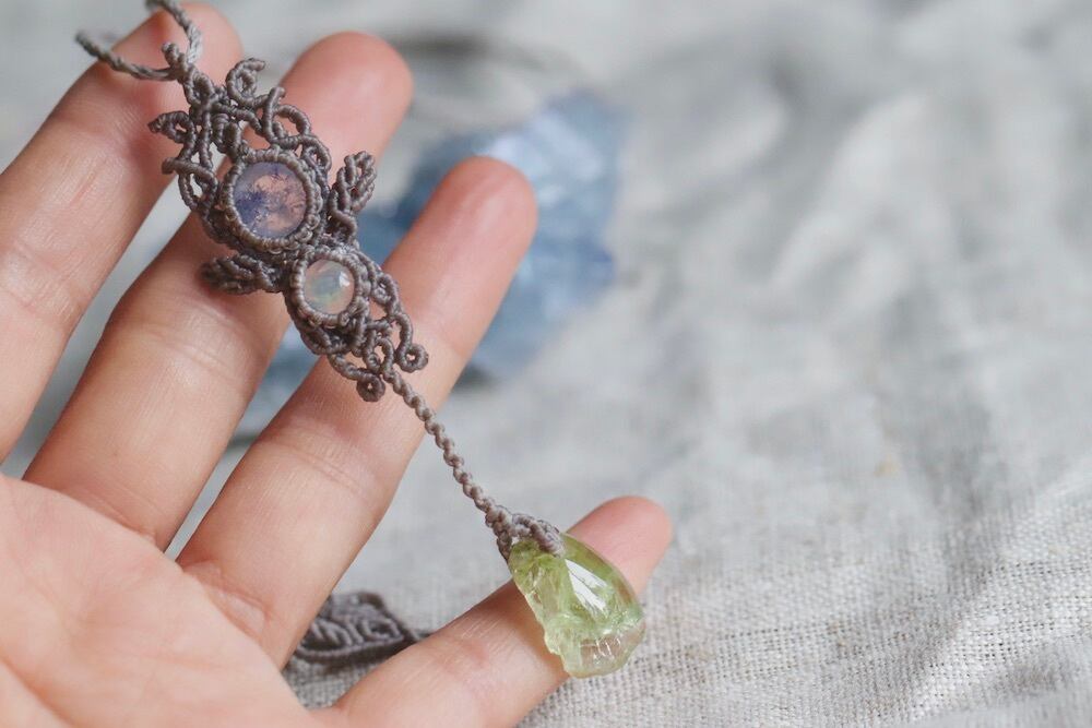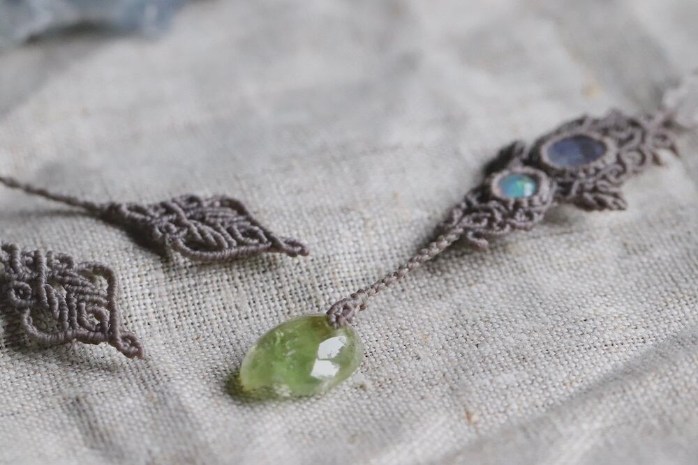 [Dumortierite in quartz]&[Precious opal] &[Greentourmaline]Pendant 〜spirit〜