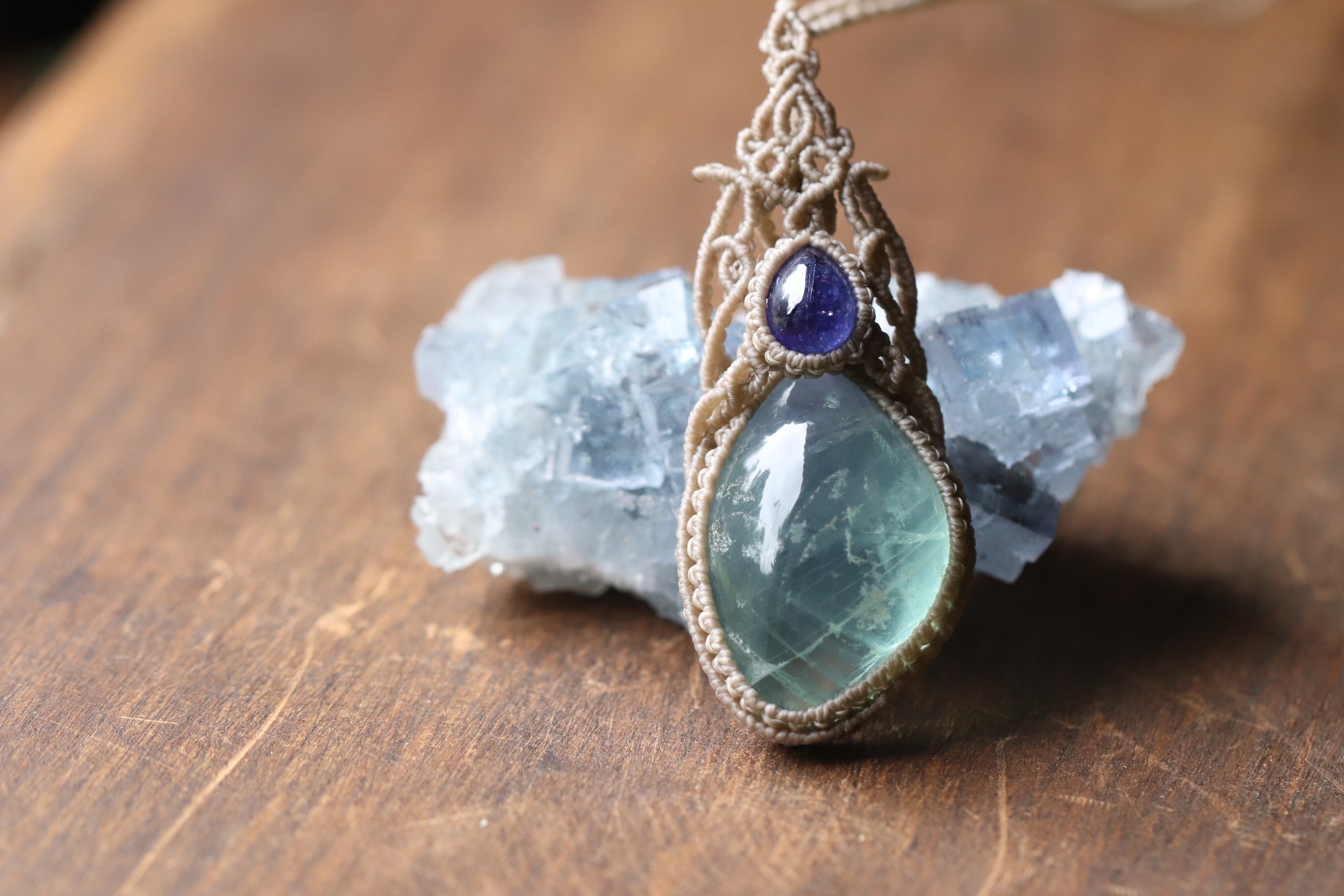 タンザナイトの空へ突き抜ける青さや、艶やかでまるでラグーンのようなフローライトのエメラルドグリーンは、