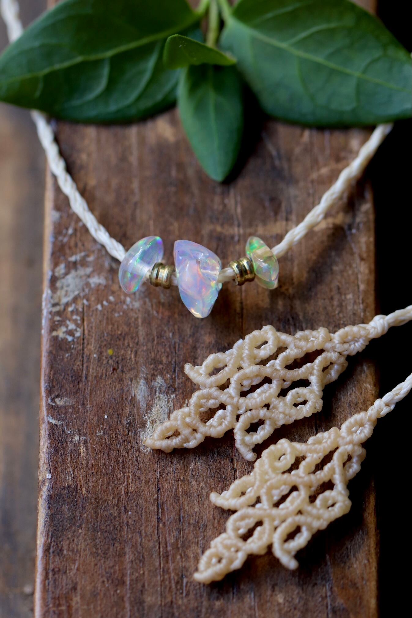 3つの小粒のプレシャスオパールをシンプルながら贅沢に使用しました。