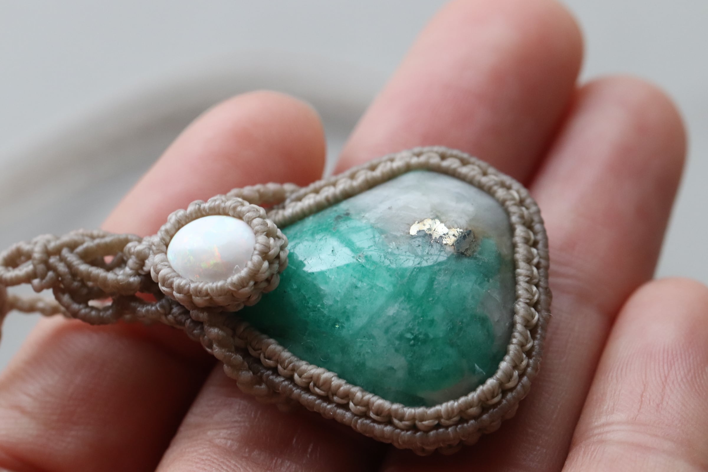 [Emerald&Mexican opal] Pendant 〜wisdom〜