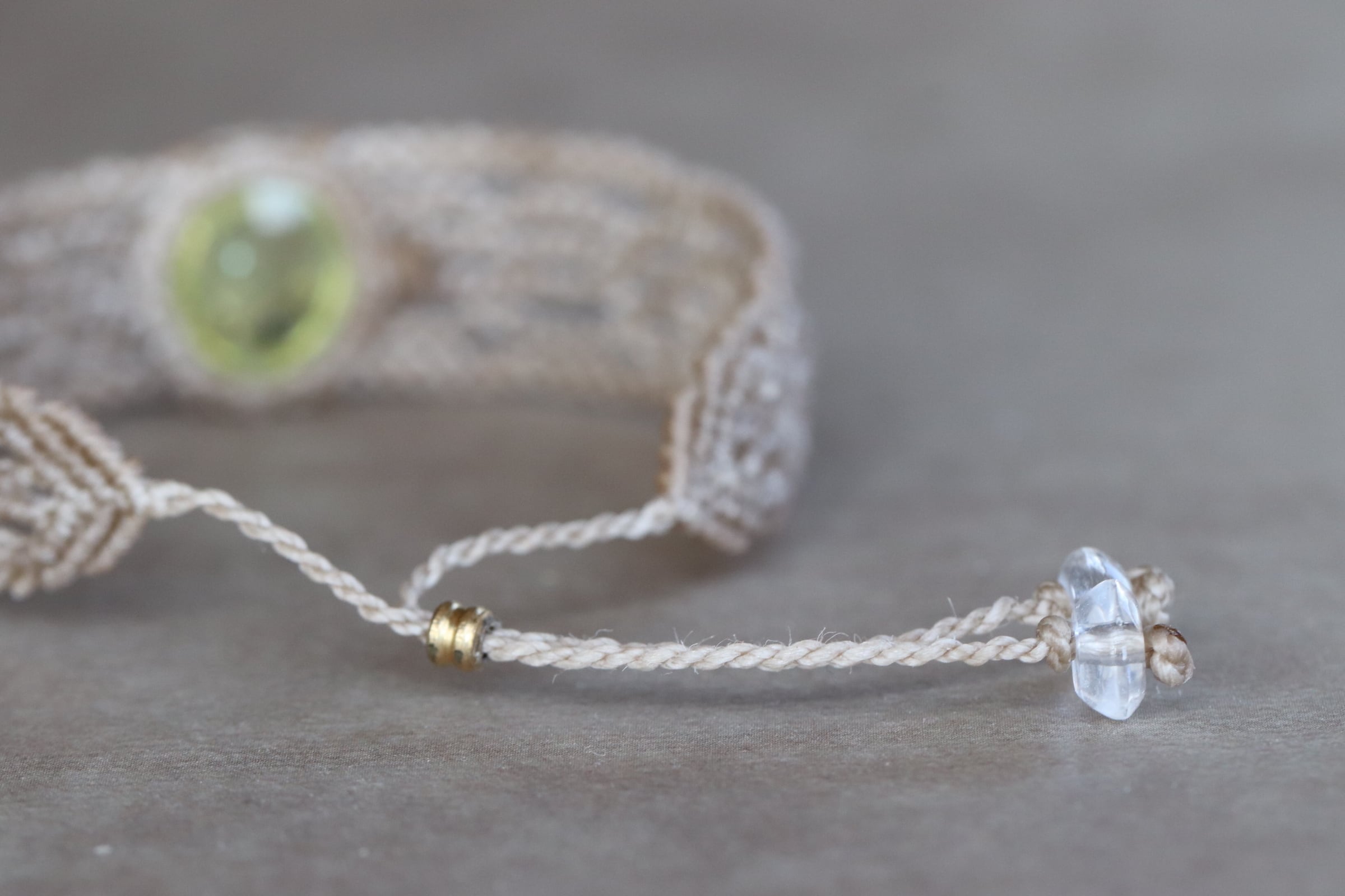 マクラメ編みの基本であり伝統的な装飾模様を組み合わせ、肌馴染みの良い色合いのワックスコードを使用し、丁寧に時間をかけて編みました。